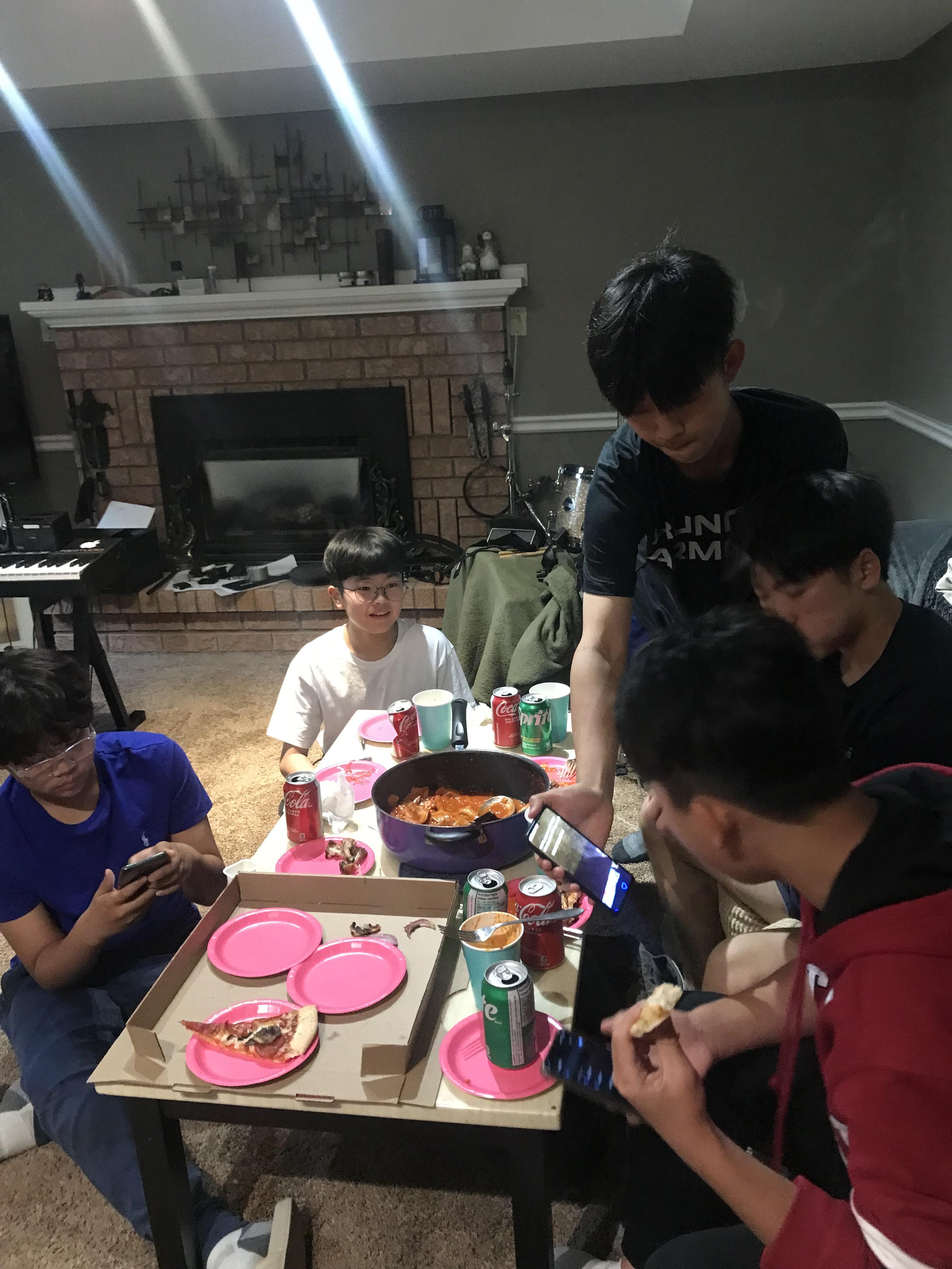 오늘은 청소년 친구들이 전도사님의 초대로 다같이 전도사님 집에가서 저녁을 먹고 놀았답니다!!